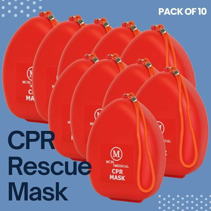 MCR Medical Pack of 10 CPR Rescue Mask, Adult/Child Pocket Resuscitator, Hard Case with Wrist Strap