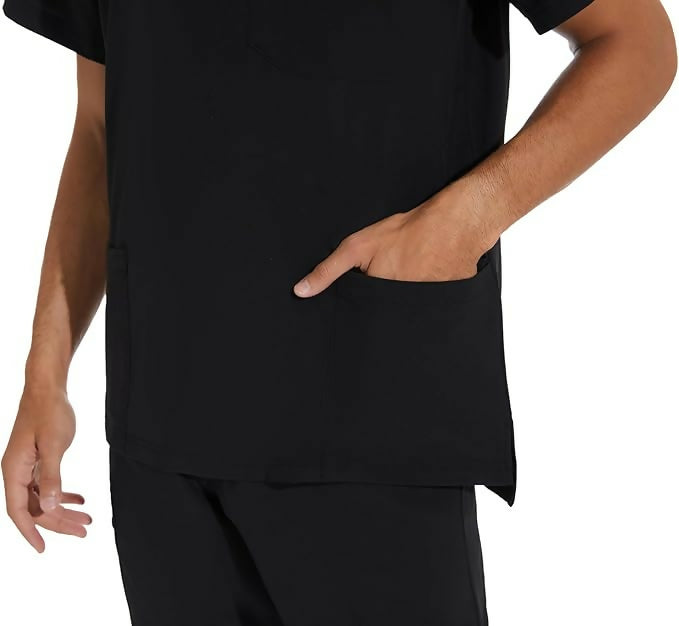 - TAILORED FIT & COMFORT: These men scrubs set feature a tailored fit and super soft stretch fabric for style and ease of movement. Experience premium comfort throughout your demanding day. Enjoy the balance of elegance and functionality in our scrubs set
