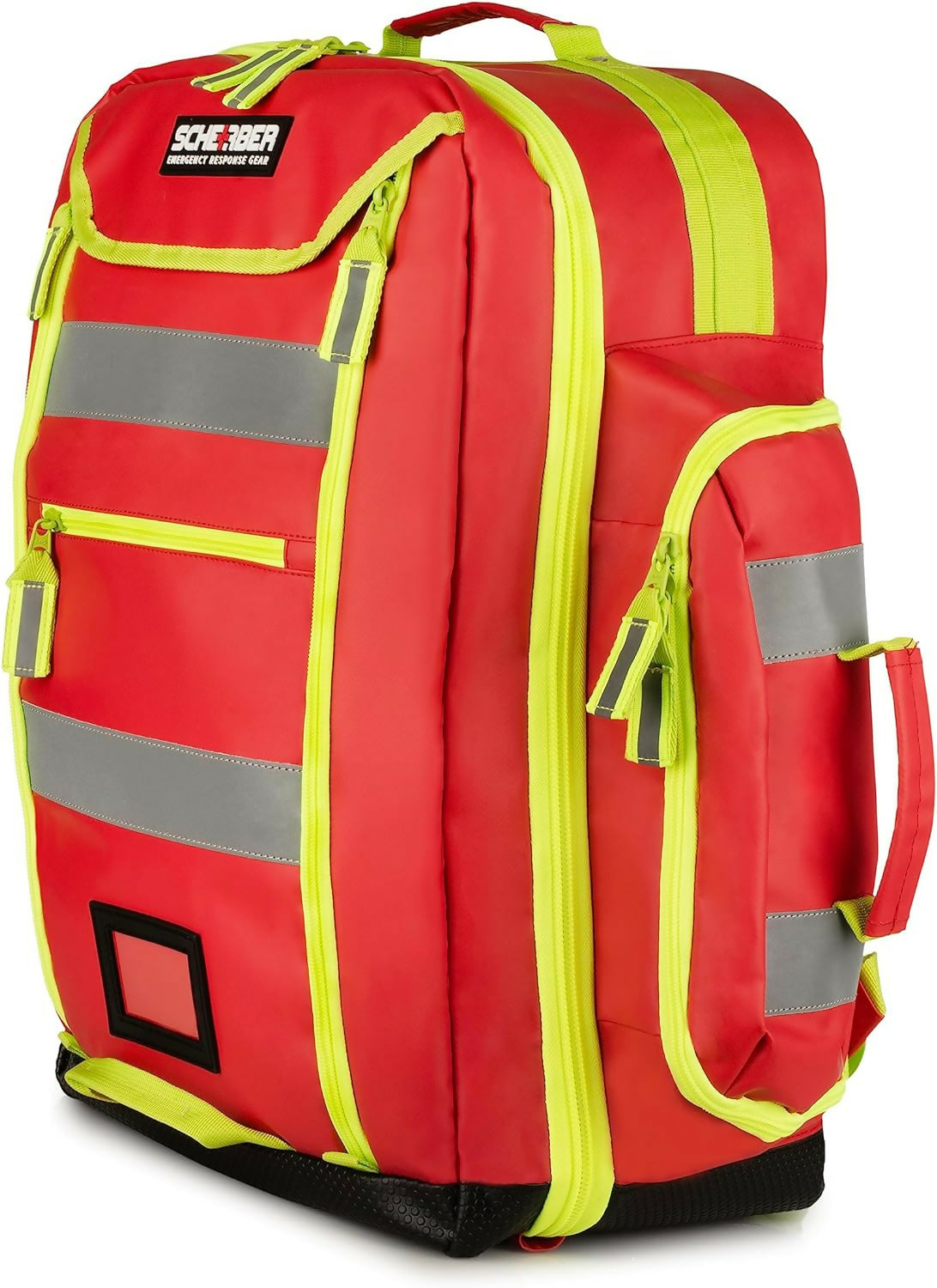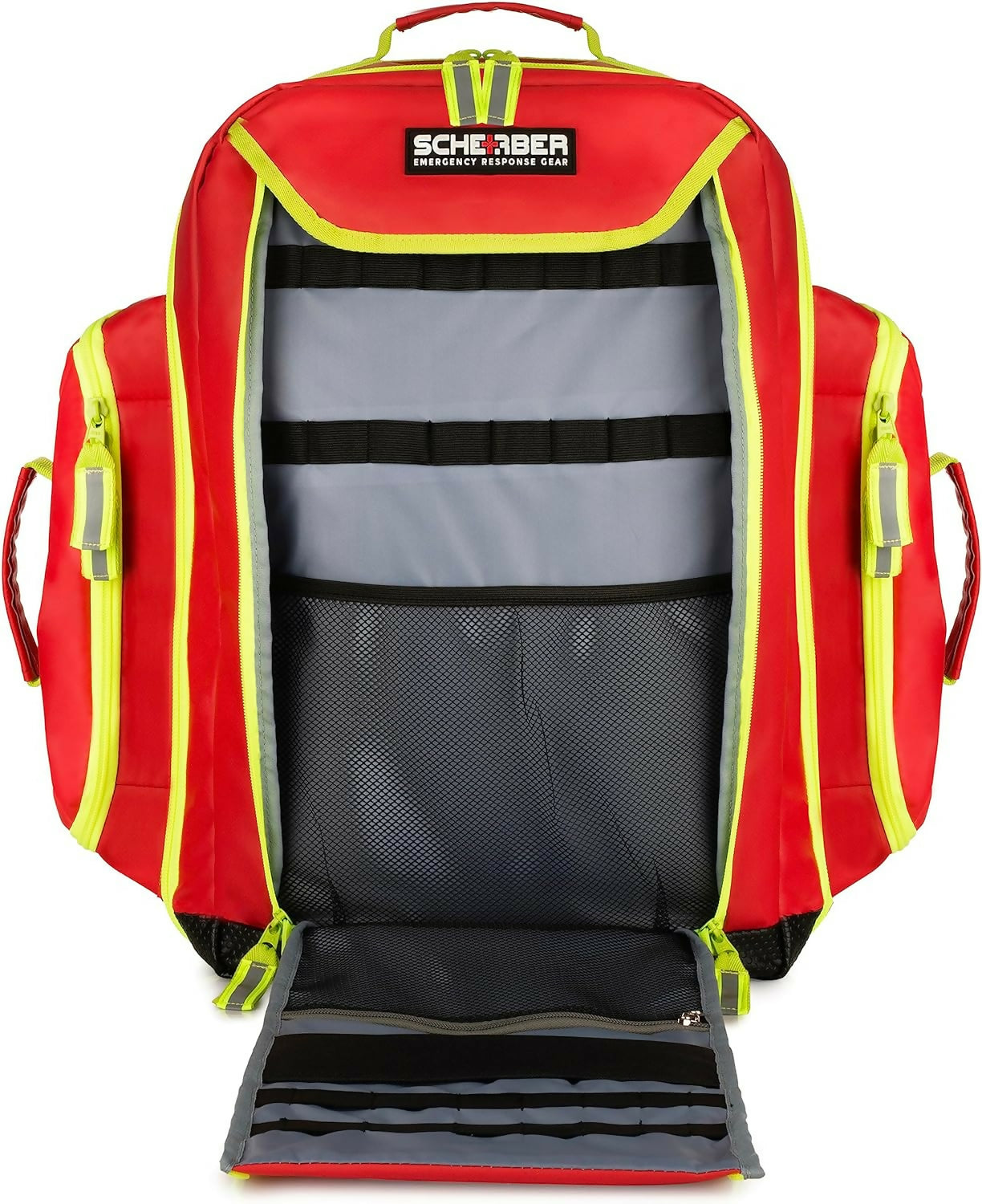 Scherber Fully-Stocked Premium First Responder Backpack | EMT/EMS Medic Trauma, Bleeding & Oxygen Medical Kit | CAT Tourniquet, QuikClot 4x4, HyFin Chest Seal & 250+ First Aid Supplies - Red