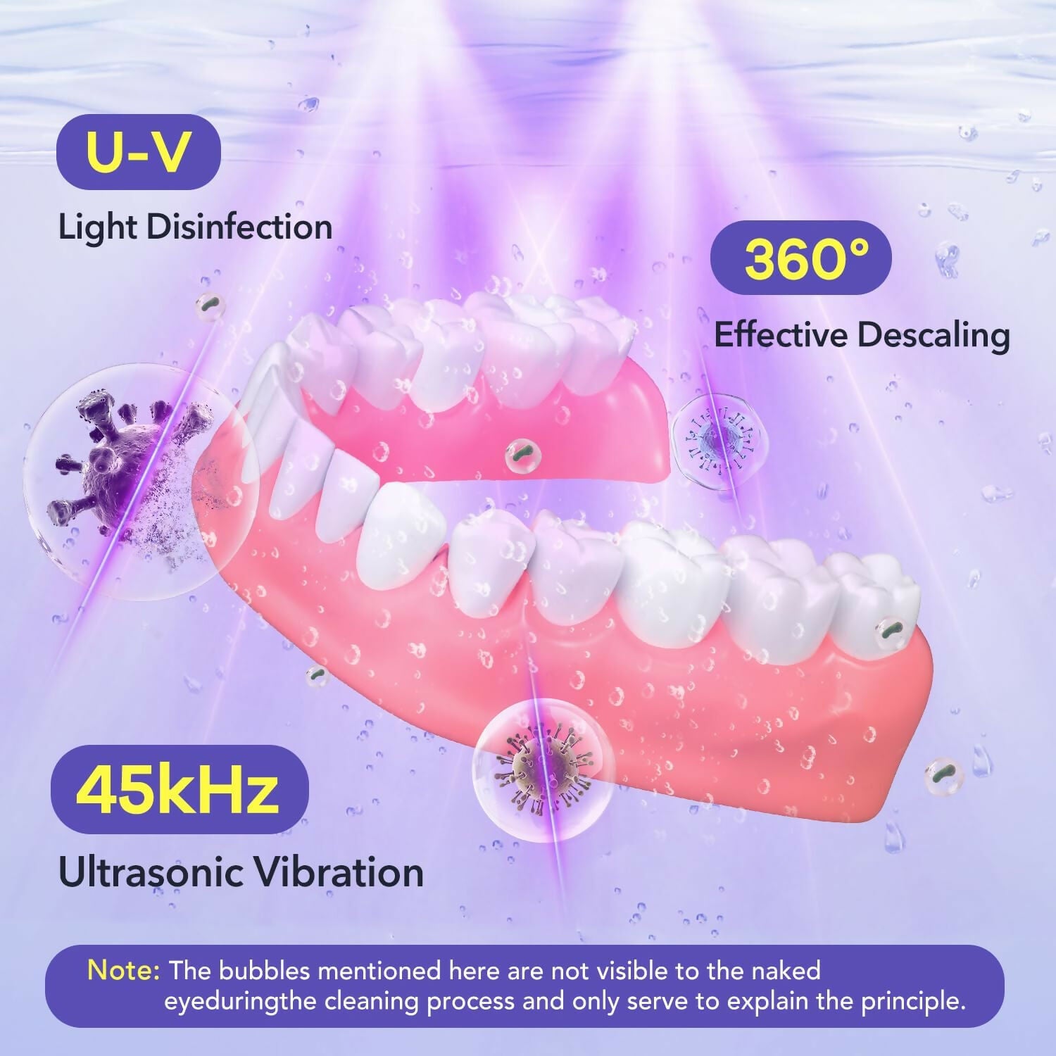 Ultrasonic Retainer Cleaner Machine 250ML, 45kHz Denture Cleaner with 4 Lights, Mouth Guard Cleaner for Aligner, Jewelry, Braces, Toothbrush Heads